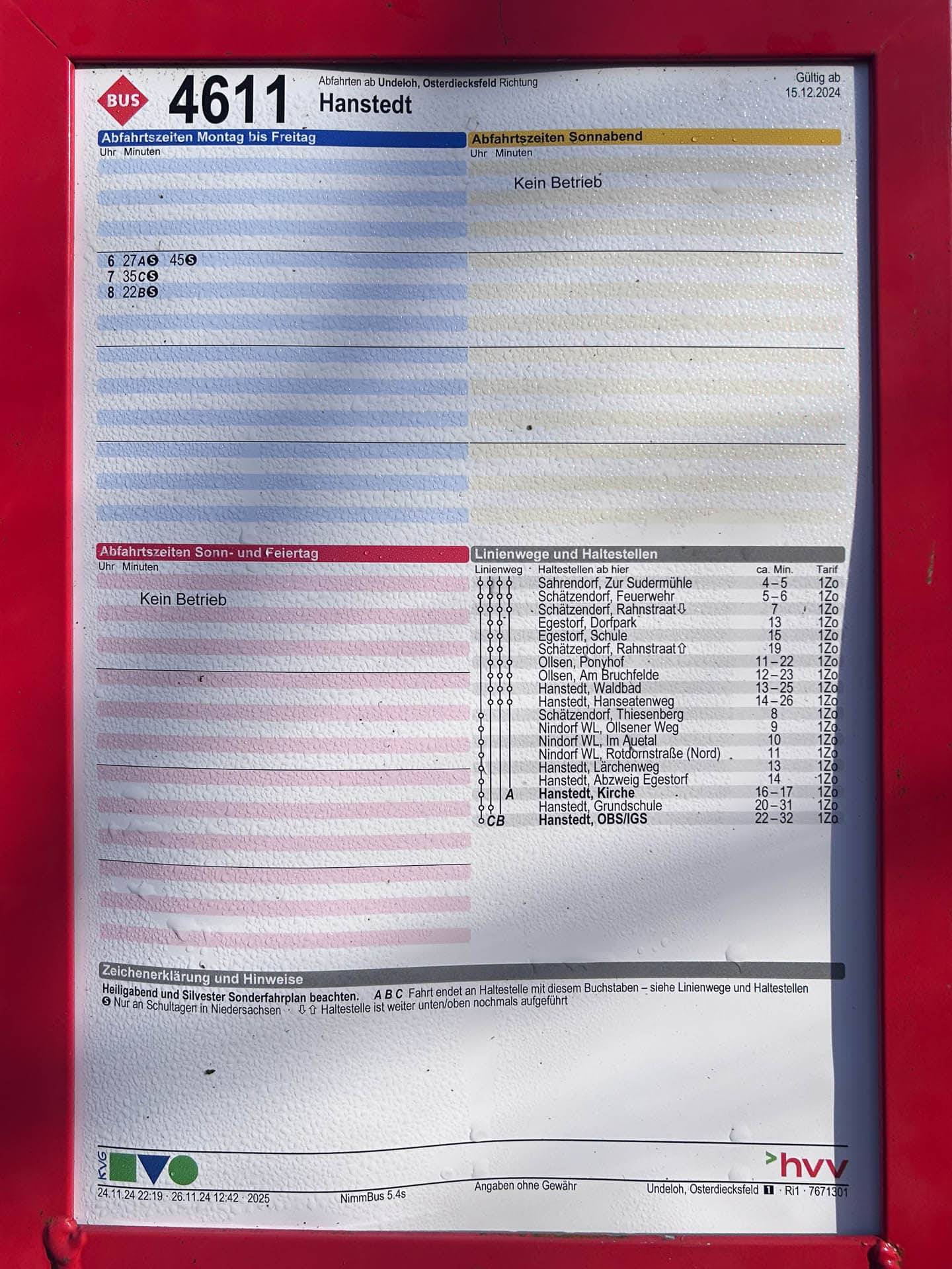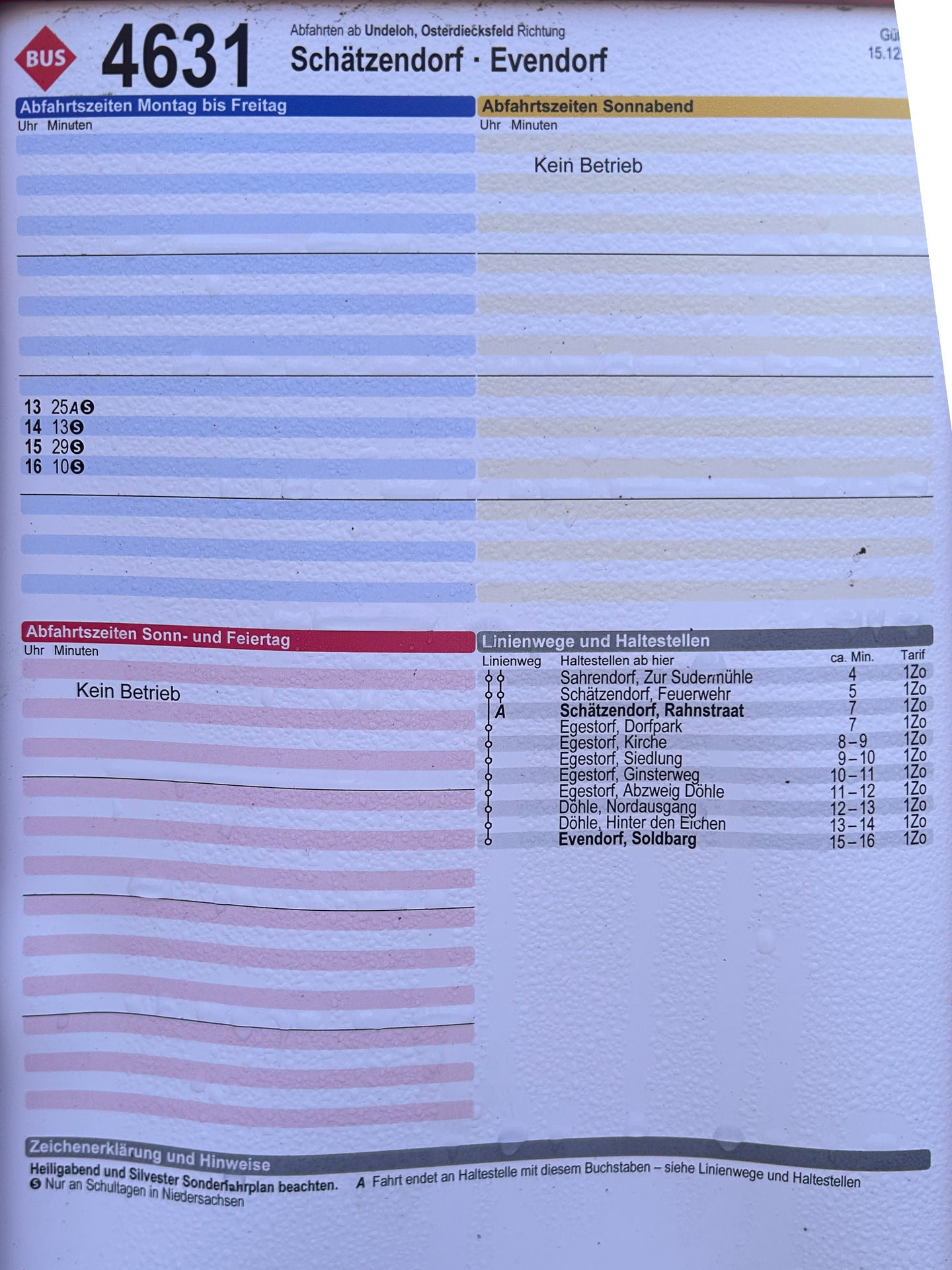 Die Bus-Zeiten richten sich nach den Schülern. Während der Schulferien fahren die Busse garnicht.
